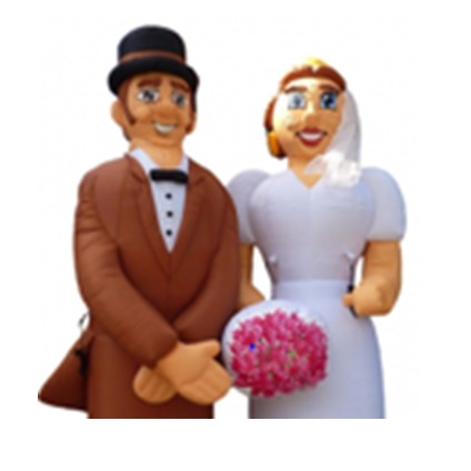 Opblaasbare feestpoppen te huur voor bruiloft of jubilium.